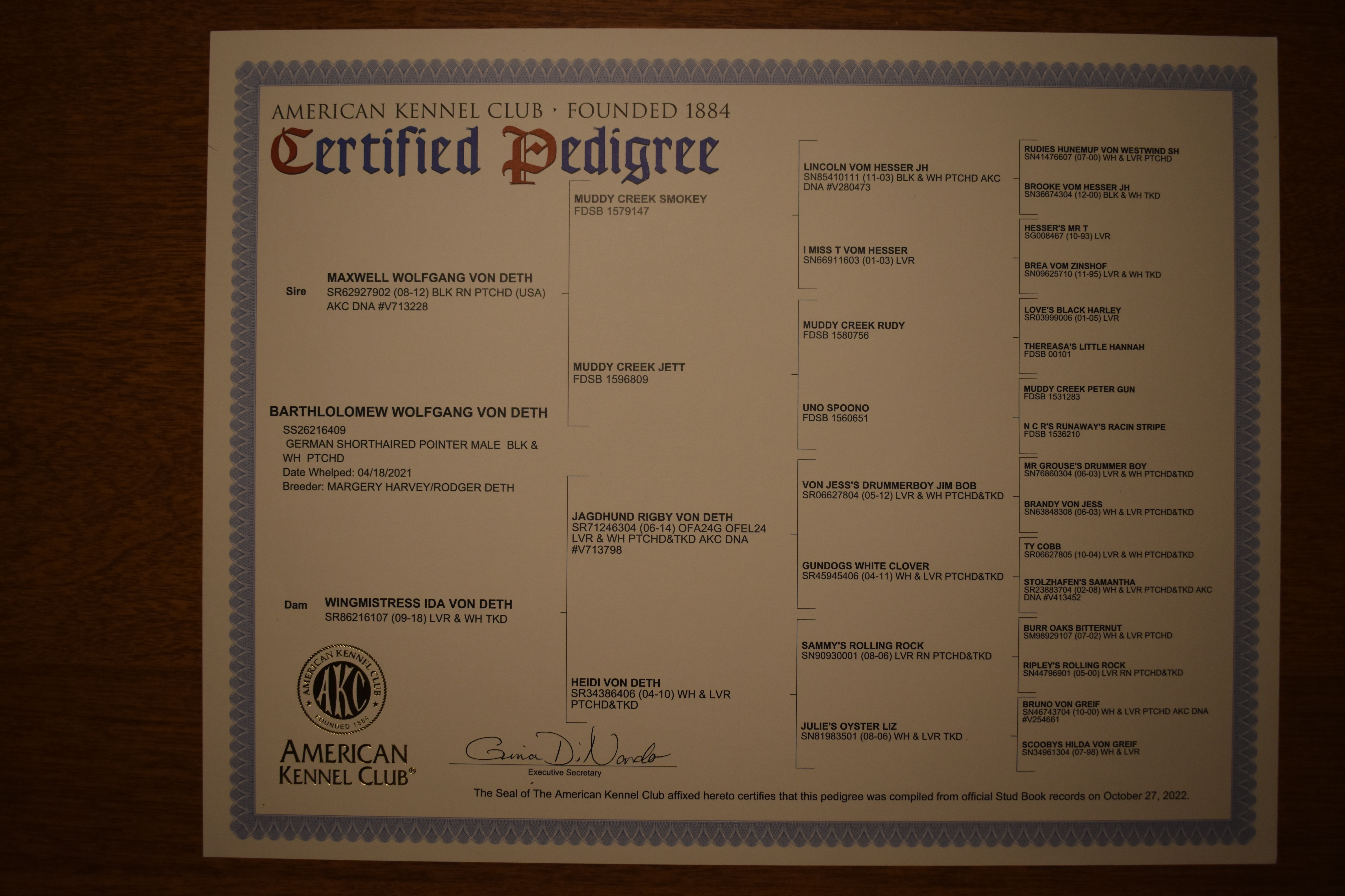 Click the buttons below to view/download an image of our breeding dogs pedigree certificates.